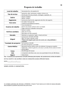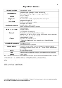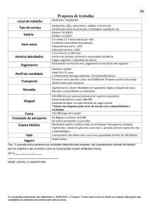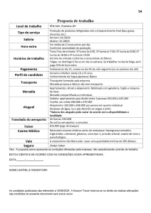 O turno é fixo diurno, (horário do início do trabalho poderá variar durante o mês), calendário 5 x 2, descanso no meio da semana. O salário é de 1200 a 1285/h.